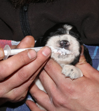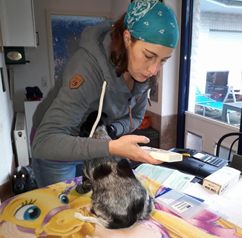 Skadi hatte gestern einen Bauchumfang von 68,5 cm und bekommt zu ihrer großen Überraschung nun auch eine Mittagsmahlzeit.