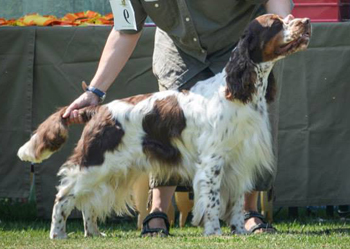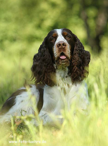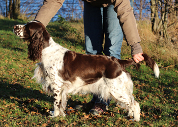 Captains Mutter Alanna vom Schieferberg ist deutscher Champion VDH und ist in die jagdliche Leistungsliste des Jagdspaniel Klubs eingetragen, denn sie hat ihren Spurlaut auf einer Prüfung bewiesen.