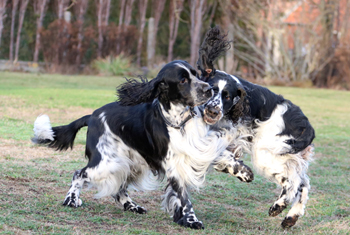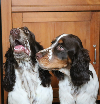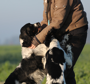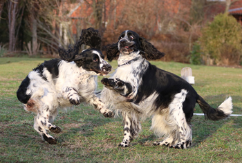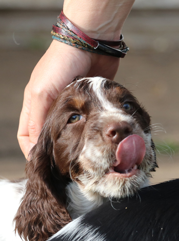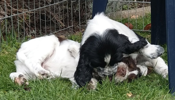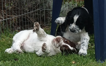 Sandras eigene Springer waren verältnismässig entspannt gewesen über die Nacht ohne ihr Frauchen, aber jetzt freuten sie sich sehr, Sandra wieder zu sehen und die Geburtswäsche zu untersuchen. Genauso wie meine Meute. Flush war völlig aus dem Häuschen, die Gerüche waren oberspannend.