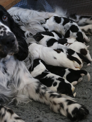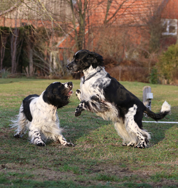 Im Moment klappt auch mit derzeit 1,2,3,4, vielen Springern hier alles wunderbar. Die Rest-S-nuggles leben jetzt normal in der Meute mit, nerven hier und da, schlafen aber noch viel. Häufchen-Management klappt schon ganz gut, aber mit Pipiseen muss man leben.