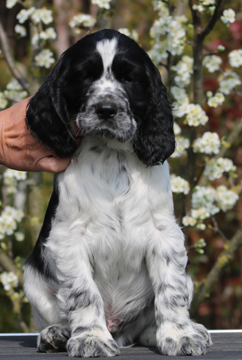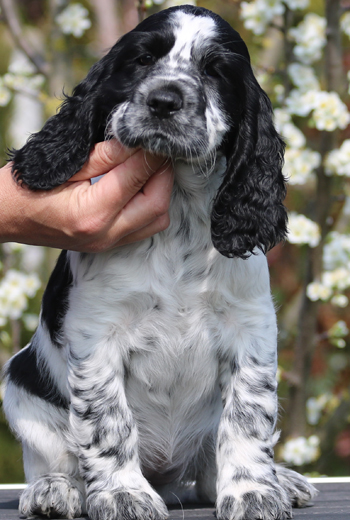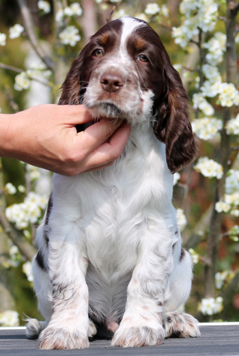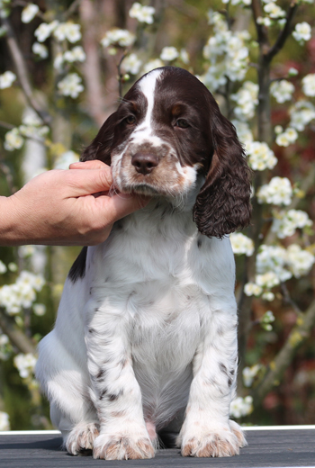 Milo ist ein recht junger Rüde, dies soll sein erster Wurf werden. Milos Vater ist Miles (Sporty Springers Kickstart), der Vater von vier Würfen ist, und dessen Wurf mit Sally tolle Welpen mit super Wesen, schönem Aufbau, gutem Haar und gute Hüften brachte. Seine Showkarriere ruht derzeit nach Erringen mehrerer Titel. Miles wurde sehr erfolgreich im Obedience und nun in der Dummyarbeit geführt.