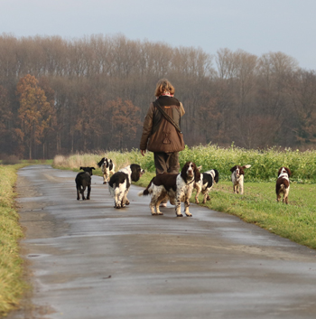 Die Route der großen Nachmittagsrunde musste ich ändern. Der ehemalige Kartoffelacker hat einfach noch zuviel (Angegammeltes) zu bieten. Da ich nicht wollte, dass meine Hunde gammlige Kartoffeln verspeisen, musste ich mir die Beute bringen lassen und gegen hochwertiges Leckerchen tauschen. Danach wanderten die Beutestücke kurz in meine Dummyweste nur, um im Moment in dem der Kartoffeljäger wieder loszockelte, unbemerkt im anderen bewachsenen Acker entsorgt zu werden. Das Spiel hatten die Kartoffelstoppler schnell verstanden, und so wurde an der Strecke einiges Sammelgut getauscht.