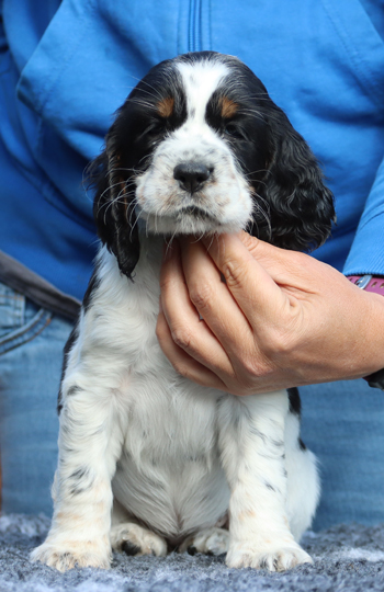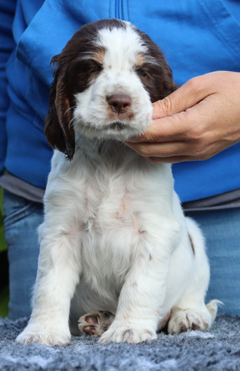Trust vererbt braun-weisse Fellfärbung und auch Loh Abzeichen.