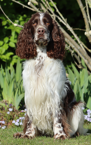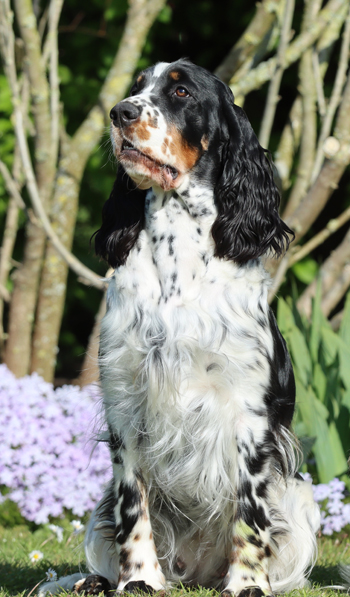 ein in sich stimmiger Rüde von eher modernerem Typ, mit sehr guten Proportionen, tiefer gut ausgeformter Brust und guten Winkelungen. Seine Augenfarbe könnte dunkler sein. Sein Haar ist von der Qualität etwas aufwändiger. Er bewegt sich sehr schwungvoll und freudig im Ausstellungsring.