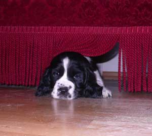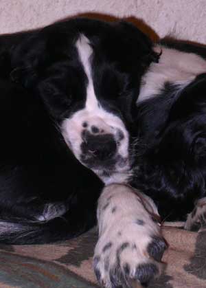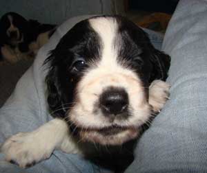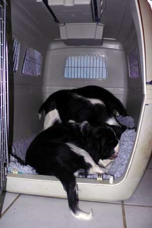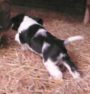 Unverhofft kommt oft... Nachdem die HD-Röntgenergebnisse des B-Wurfes vorlagen und die ersten Welpeninteressenten sich ernsthaft angemeldet hatten, ging es los mit der Suche nach dem passenden Rüden der Vater des C-Wurfes werden sollte. Recht früh schon hatte ich mich festgelegt auf einen in Schweden beheimateten "Briten" der in meinen Augen allen Anforderungen entsprach, und von dessen Nachkommen ich begeistert bin. Doch dann Ende April hatten wir endlich die Möglichkeit unsere Hunde per Gentest auf ihren PRA Status untersuchen zu lassen. Die Ergebnisse dieses Tests stellten meine Planungen leider in Frage- nun war guter Rat teuer und kostete mich einige schlaflose Nächte. Mir war klar, dass die Tests eine Weile brauchen und die Auswahl an getesten Rüden zu klein sein würde für eine Entscheidung mit der ich hundertprozentig zufrieden sein könnte. Im Laufe dieses Prozesses "stolperte" ich förmlich über den jungen Rüden "Barnie vom Soestbach" der mich, als ich ihn kennenlernte, mit seinem jugendlichen Charme einfach um den kleinen Finger wickelte. Zunächst wollte ich ihn einfach interessehalber anschauen, um ihn eventuell für einen späteren Wurf einzusetzen. Auf Anhieb war mir klar, dass er für Joy "Mr Right" ist, denn seine absolut führerweiche Persönlichkeit setzt einen überaus erwünschten Kontrapunkt zu Joys "Starletmentalität". Nun gut, Barnie wurde zunächst im Gedächtnis abgespeichert für später und ich war innerlich immer noch auf dem Weg nach Schweden. Aber ich hatte meine Rechnung diesmal ohne Joy gemacht und sie erinnerte mich daran, dass sie auch noch ein Wörtchen mitzureden hat- sie wurde einfach zu früh läufig. Absolut überzeugt von der Pünktlichkeit meiner Hündinnen in diesem Bereich hatte ich zuvor schon mit einer Freundin eine Wette gewagt, dass Joy am 25.07. läufig würde und ich am 04.08. meine Reise antreten könnte. Pustekuchen- sechs Tage zu früh war Joy unübersehbar "in Season": ich hatte eine Flasche Champagner an Marion verloren und zum Zeitpunkt der "Stehtage" eine ferienbedingte Urlaubssperre. Also hat wieder Joy entschieden wer der Vater ihrer Welpen wird:Barnie vom Soestbach .