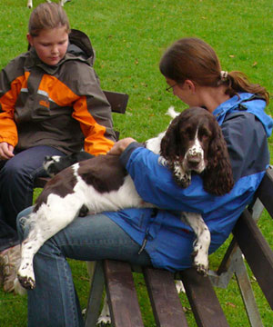 Die Zeit rennt und wir lassen es uns gut gehen. Joy ist vor allen Dingen mit Nahrungssuche und Schlafen beschäftigt. Sie kümmert sich also jetzt schon sehr gut um ihren Nachwuchs :-) Beim Springertreffen am letzten Sonntag hat sie sich von allen Laufspielen und Rempeleien ferngehalten und sich in majestätischer Zurückhaltung geübt. Alle die Joy näher kennen waren erstaunt wie "Schwanger" sie sich jetzt schon gibt. Bei einem Bauchumfang von bereits 65cm ist das aber auch kein Wunder- für das Rennen auf den täglichen Spaziergängen ist es zwar noch komfortabel genug, aber selbst an Obediencetraining ist jetzt nicht mehr zu denken. Heute sind es noch genau 21 Tage bis zum errechneten Geburtstermin- die Spannung steigt, wird Joy wieder pünktlich sein, oder -wie schon mit der Läufigkeit- dieses Mal zu früh?