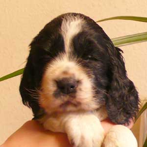 Sowenig wie sich das Wetter ändert, gibt es auch hier keine großen Veränderungen. Immer noch steht Besuch, Besuch auf dem Plan. (Besuch auch diesmal wieder mit guter Kamera, sodass Herr Höfling eine dritte C-chen Galerie eröffnet hat :-) Sobald es eben geht wird die Meute im Garten gefüttert, damit die unweigerlich folgenden großen Geschäfte bereits da erledigt werden, wo es auch später geschehen soll. Die Babies kennen jetzt den Weg vom Eingang der Welpensuite zum trockenen Futterplatz auf dem Rasen. Jedoch machen sie bei der Wetterlage keine großen Anstalten sich ausgiebig umzusehen sondern drängen schnell nach der Mahlzeit wieder in Richtung Welpenhaus wo das Handtuch zum Abrubbeln auf sie wartet. Die Vereinzelungen der Welpen Nr 3,4 und 5 haben auch keine völlig neuen Erkenntnisse gebracht: Rüde 4 war ähnlich beeindruckt von der neuen Situation und zeigte das gleiche Bild wie am Tag zuvor Rüde Nr6. Rüde 3 sah sich in Ruhe im ganzen Raum um, freute sich als er mich gefunden hatte und war recht guter Dinge, ebenso Hündin5. Gestern sind die Welpen zum ersten Mal einzeln auf den Trimmtisch gekommen, wurden sehr freundlich aufgefordert sich im Stand betasten zu lassen und sich dort oben wohl zu fühlen. Bald können die C-chen dann dort auch die Erfahrung mit dem Spanielkamm machen, obwohl es noch nicht viel zu kämmen gibt an meinen Kurzhaar-C-chen. :-) |