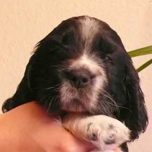 Vier Tage ohne Eintrag bedeuten diesmal nicht, dass von Katastrophen zu berichten ist. Zur Beruhigung aller: die Welpen sind weiterhin quietschfidel aber die Züchterin ging in der vergangenen Woche auf dem Zahnfleisch. Arbeit (auch wenn es nur Teilzeit ist), vier erwachsene Springer, die Babies, der Haushalt und Welpeninteressenten haben mich ganz schön auf Trab gehalten. An dieser Stelle einen Dank an meine zweibeinigen Helfer, ab jetzt habe ICH anstatt 18- 24 Stunden Welpendienst! Obwohl, derzeit sind 24 Stunden eine grobe Übertreibung mindestens 20 der 24 Stunden verschlafen die C-chen noch. Die Wachphasen sind zwar schon deutlich länger als in der Vegetativen- und Übergangsphase, und auch schon mit viel mehr Geschehen gefüllt, aber trotzdem verschlafen die Babies noch den größten Teil des Tages. Zum Geschehen in Wurfkiste und Auslauf: Hündin 7 und Rüde 3 konnte ich jeweils schon beim Spiel mit dem Ziehknoten beobachten, ansonsten spielen die C-chen sehr interessante Spiele miteinander. Sie üben sich in hundlicher Kommunikation, mit allem was dazu gehört, Kläffen, Knurren, Jaulen, Winseln (derzeit noch in einem erträglichen Rahmen) und Körpersprache d.h. Wedeln, Pföteln, Schnauzenstoß, Rute aufstellen, Imponieren, Beschwichtigen etc. Das Laufen selbst auf den Fliesen klappt bei allen schon recht gut, aber die Babies nutzen bisher noch nicht den gesamten Auslauf, sondern zum größten Teil nur den Quadratmeter direkt vor der Wurfkiste. Das wird sich sicherlich im Laufe der nächsten Woche ändern, der ein oder andere klopft ja auch schon an die Auslauftür. Ein Beweisfoto dafür gibt es in der zweiten C-chen Galerie von Herrn Höfling. Die dort gezeigten Fotos sind vom gestrigen Besuch von Penny und ihren Zweibeinern bei uns. Penny war gestern nicht der einzige Springerbesuch bei den Babies. Auch Barnie (der Vater der Welpen) und seine Besitzer warfen einen zufriedenen Blick auf den Nachwuchs. |