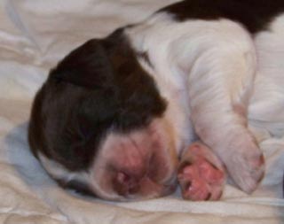 Die Vegetative Phase (so benannt von E. Trumler) In den ersten vierzehn Tagen nach der Geburt, besteht das Leben eines Hundewelpen nur aus Saugen und Schlafen. Die Sinnessysteme sind noch nicht ausgebildet, Ohren und Augen sind vollständig verschlossen. In den ersten fünf Lebenstagen ist das Schmerzempfinden wenig ausgeprägt, und kleine Verletzungen heilen schneller und bluten wenig. Das Verhalten der Welpen ist in dieser Phase rein instinktiv gesteuert. Ein instinktiv gesteuertes Verhalten ist z.B. der Saugautomatismus: Beim "Lecksaugen" liegt die Welpenzunge an die Zitze geschmiegt und bildet eine Rinne, mit bis zu 20 kleinen Druckbewegungen pro Sekunde drückt die Zunge die Zitze aus. Zusätzlich zum Saugen führt der Welpe den sogenannten Milchtritt aus, die Vorderpfötchen massieren zusätzlich die Zitze um den Milchfluß zu beschleunigen. Die Welpen liegen häufig eng aneinander gekuschelt, hierbei kann man jedoch noch kein Sozialverhalten erkennen, sondern nur den Drang zur Wärmequelle. Die Vegetative Phase ist als Fortsetzung des "unbewußten Lebens im Mutterleib" anzusehen. Sie bereitet den Welpen vor auf das Leben in der Übergangsphase die mit der dritten Lebenswoche beginnt, und in der die Sinne erwachen
