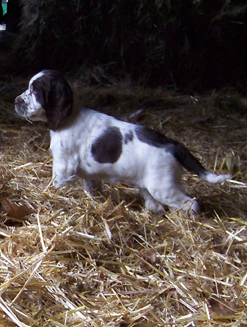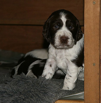 22.01.12 (Tag 51) Was kann man bei diesem Wetter Besseres tun als im Bett zu bleiben? Leider teilen die I-nsider diese Ansicht nur in ganz kurzen Phasen während des Tages. Am Wochenende hatten wir noch einmal Besuch von zukünftigen I-nsiderbesitzern die nun doch aufgeregt sind, da der Tag der Abholung unaufhaltsam näher rückt. Wir haben begonnen mit Stubentraining d.h. jeden Abend verbringt ein einzelner Welpe die Zeit bis zum Nachtmahl als verwöhntes Einzelkind im Großrudel, ist also von seinen Geschwistern getrennt, muß sich die Welt alleine ansehen und auch schon mal ein Halsbändchen tragen. Mit Sunny am Freitag und Frida heute waren diese Abende recht harmonisch und wurden von beiden sehr genossen. Ein weiteres Highlight des Wochenendes war Fivels (SS High Five) Trimmbesuch. Natürlich treffe ich ihn regelmässig beim Dummytraining, aber mal in Ruhe zu sehen wie der junge Mann sich präsentiert ist auch einfach schön. Ich bin sehr zufrieden mit dem, was ich von meinen H-üpferchen zu sehen bekomme. Fivels Frauchen hatte schon sehr schön mit ihm geübt, aber klar, da auch Brüderlein Feldmann geladen war, war es doch ein gutes Training unter Ablenkung.