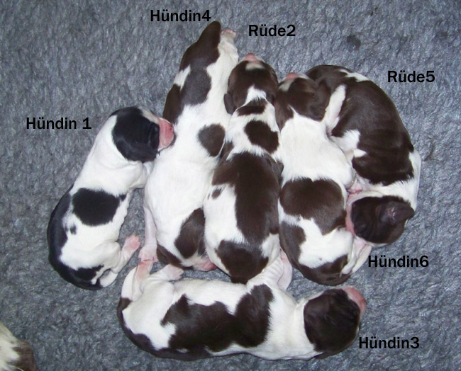 | Unser I-Wurf ist am 02.12.11 geboren: es sind zwei Rüden und vier Hündinnen |