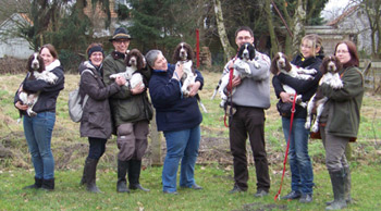 15.02.12 (35. Tag) Undis ist natürlich weiterhin topfit und nimmt ungebremst am Training teil. Mit ein bißchen Phantasie kann man aber doch meinen zu erkennen, dass ihr Bauch sich schon minimal rundet. Wir erahnen derzeit einen Hauch von Frühling und sind unterwegs in diversen Trainingsmissionen. - siehe z.B. Bilder rechts. Mehr Impressionen vom Dummytraining aus der Kamera von Sigrid Müller findet man HIER. Gestern trafen wir die Hälfte der I-nisder zum Obedienceworkshop und ich war sehr begeistert von den 10 Wochen alten Mäusen. Der Kontakt zu ihren Leuten ist hervorragend und sie konzentrieren sich schon sehr fein. Morgen werden wir die "Sporties-Obedience-Profis" treffen, zu einem gemeinsamen Training und am Wochenende steht die erste Prüfung an für dieses Jahr für Cinco und einige andere Sporties Jungs ;-)