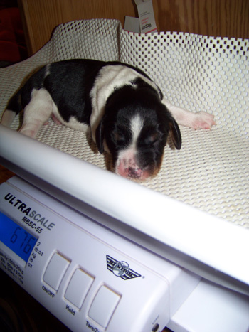 22.03.12 (Tag 7) Der Aufmerksame Leser hat sicher bereits die graphische Darstellung der Gewichtszunahme oben gefunden. Täglich nach dem Wiegen übertrage ich jetzt die Gewichte und lade sie direkt hoch, so dass zeitnah die Entwicklung verfolgt werden kann. Heute vor einer Woche sind die Zwerge zur Welt gekommen, und der Wochengeburtstag ist für mich immer der "Marker" für alle "unangenehmen" Dinge die den Zwergen so passieren. Heute steht das erste Krallenschneiden auf dem Programm. Dies wird jetzt immer Donnerstags passieren, ebenso wie die Wurmkuren. So schafft man sich eine logische Struktur ;-) Das regelmässige Krallenschneiden ist sehr wichtig, einmal um das Gesäuge der Hündin vor Verletzungen zu schützen- die Welpen führen ja mit ihren Pfötchen den Milchtritt aus und massieren die Zitze- sehr unangenehm für die Hündin wenn dabei nadelspitze lange Krallen zum Einsatz kommen. Auch wenn die Welpen älter werden ist das regelmässige Krallenschneiden sehr wichtig, denn wenn die Spitzen der Nägel nicht gekappt werden, wächst das "Leben" im Inneren der Kralle unverhältnismässig lang, und später kann die Kralle nicht mehr kurz gehalten werden. Welpen, sofern sie nicht auf Beton aufwachsen, laufen sich ihre Krallen eben noch nicht selbstständig ab.