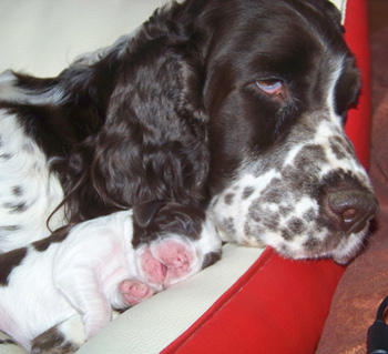 Nach Undis plötzlichem Tod im Mai war guter Rat teuer. Eine Tochter von ihr hatte ich leider aus verschiedenen Gründen nicht behalten können, dafür habe ich ihre Enkeltochter Fame, die meinem Idealbild vom Springer sehr sehr nahe kommt. Jedoch fällt mit Fame als einziger Zuchthündin die "Nutzung" der sehr guten Undissöhne in meinem Kennel leider aus, und ich sehe da viel Potential ungenutzt.