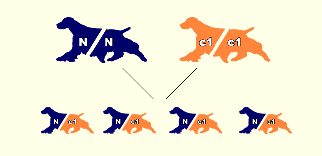Eine Verpaarung cord1 Normal (N/N) X cord1 affected (c1/c1):